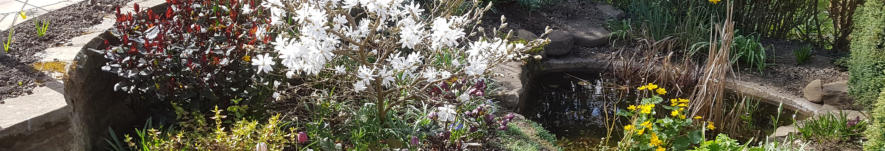 over several levels always keeping some of the garden out of view and drawing you on to look around. We have a few sitting areas, a stream, ponds